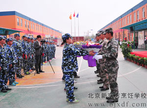 中国人民解放军66391部队韩振军营长对十天来军训所取得的成绩予以了肯定,同时也希望同学们把军训中学到的坚持、拼搏、吃苦精神运用到以后的学习生活中,让同学们英姿飒爽的一面永远成为北京新东方学员展现给社会最美的风景线。