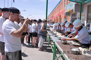 虽然语言的障碍使得在交流方面有点不方便,但也抵挡不了东方美食对丹麦朋友的吸引。为了能让外国友人亲手烹制中国菜肴,北京新东方烹饪学校特别安排由老师先操作,之后外国友人亲手操作。