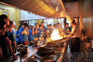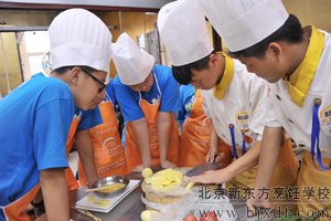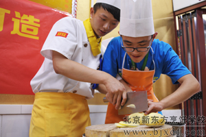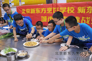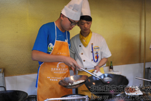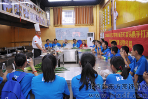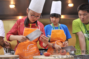 为了能让这些可爱的朋友真正体验到生活和烹饪美食的乐趣,北京新东方烹饪学校特别安排有老师先操作,之后在老师的指导下,让这些初中生以团队协作的形式自己烹饪美食。