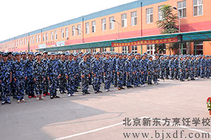 最后北京新东方烹饪学校校长助理讲话:同学们,即将开始的军训是你们新学期奋斗历程的一个开端。在新学期开学之前,组织军训,目的在于,一是增强青年学生的国防意识,磨练意志,培养同学们艰苦奋斗、不怕困难的精神,二是增进同学们的组织纪律观念,三是培养团队精神,强化集体意识。四是培育严谨的生活作风、自理能力。王助理还对军训的学子提出了三点要求:一、大家要有吃苦的准备,要树立战胜困难的信心,克服娇气,不怕苦,不怕累;服从命令,听从指挥,严格训练,力争在个人素质提高方面取得好的收获。二、遵守纪律,团结互助。 三、尊敬教官,学习教官,学习人民军队的优良作风。
