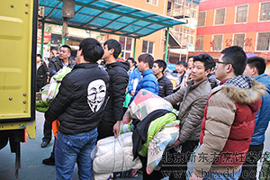 学生有序将自己的包裹装车