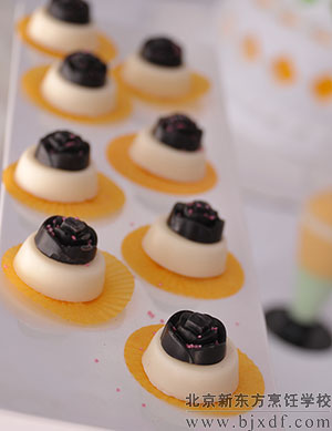 松软的蛋糕、柔香的奶油、丝滑的巧克力、迷人的果香……一个个精致诱人的蛋糕犹如鲜花般绽放在北京新东方烹饪学校西点展台上,精致美味的蛋糕、香飘四溢的点心,不同的造型,不同的风格,不一样的款式,这个展台将西点专业所有学习内完美重现!甜蜜的味道、幸福的感觉一下子填充了整个校园。师生们也会不经意地停下脚步,驻足展台前,细细品味。 精神与创新想法。西点师,一个引领时尚潮流动向的职业,一个承载着甜蜜与幸福的职业,一个可以化身为艺术设计师的职业。