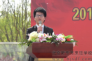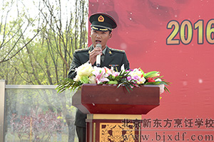 最后北京新东方烹饪学校校区负责人徐瑞林主任讲话:同学们,即将开始的军训是你们新学期奋斗历程的一个开端。在新学期开学之前,组织军训,目的在于,一是增强青年学生的国防意识,磨练意志,培养同学们艰苦奋斗、不怕困难的精神,二是增进同学们的组织纪律观念,三是培养团队精神,强化集体意识。四是培育严谨的生活作风、自理能力。徐主任还对军训的学子提出了三点要求:一、大家要有吃苦的准备,要树立战胜困难的信心,克服娇气,不怕苦,不怕累;服从命令,听从指挥,严格训练,力争在个人素质提高方面取得好的收获。二、遵守纪律,团结互助。 三、尊敬教官,学习教官,学习人民军队的优良作风。